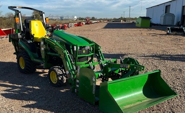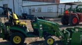 This 2020 John Deere 1025R MFWD tractor, with a mere 16 hours, is a virtually new compact machine, perfect for small properties, landscaping, or light agricultural work. Powered by a 23.9 HP John Deere 3TNV80F diesel engine, it offers reliable performance through a hydrostatic transmission with MFWD and differential lock for excellent maneuverability and grip. The loader, equipped with a 55″ bucket and 42″ forks, along with the John Deere 260B backhoe with a 12″ bucket and a 49″ Frontier box blade, make it a multi-purpose powerhouse. With a 540 PTO, three-point hitch, and three hydraulic remotes, this low-hour tractor is in pristine condition and ready to handle a variety of tasks with ease and precision.